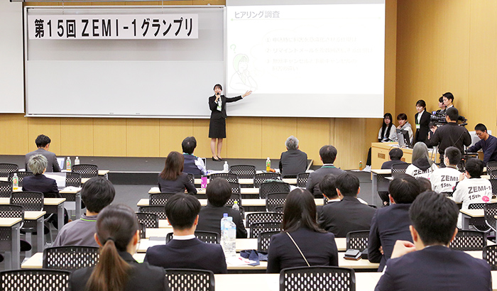 学長 当初は日経BPマーケティングが主催する「西日本インカレ」という西日本地区の学生が参加できるプレゼンテーション大会と連動しており、初回大会は本学キャンパスで開催しましたね。ZEMI-1で上位入賞したチームが「西日本インカレ」の出場権を得られるという形で実施していました。他大学の学生と競い合える場に出られることは、学生たちのモチベーションになっていましたね。