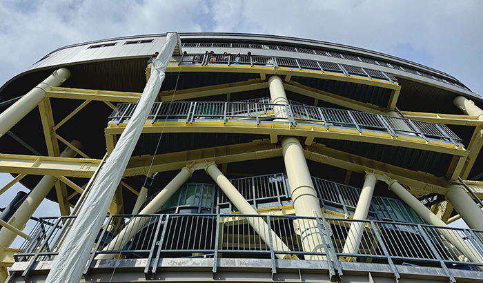山谷先生 タワーには階段やスロープが整備されていますが、津波でそれらが使えなくなった場合のことも考えられていましたね。落ちないように身体に密着した造りなので、ノースリーブを着ていた学生は肩に擦り傷ができるほどでした。